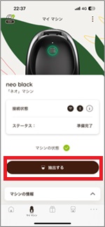 (2)「ネスカフェ ドルチェ グスト ネオ アプリ」で【抽出する】を押す