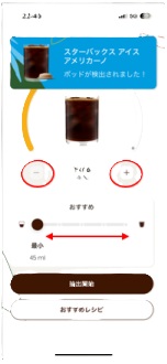 (3)「ネスカフェ ドルチェ グスト ネオ アプリ」でお好みの温度、湯量に調節し、【抽出開始】を押す