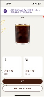 ※【標準レシピとして保存】を選択すると、次回、同じメニューをアプリから抽出する場合や、マシンで手動抽出する場合に、設定したレシピが自動的に適用されます。